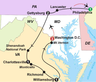 Step back in time and explore Colonial Williamsburg, once Britain’s largest colony in the New World. See historical reenactors and artisans populate the streets and buildings, bringing 1770 to life. Enjoy free time for lunch on your own. Next, drive to Alexandria, Virginia to visit Mt. Vernon Estate and Gardens, President George Washington’s beautiful estate overlooking the Potomac River. Later, arrive in Washington D.C., check into your hotel, and unpack for a three-night stay. |