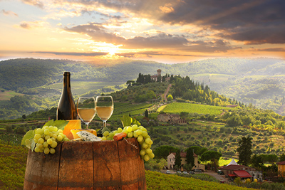 Travel to Siena, in the heart of Tuscany. Enjoy a Walking Tour as you stroll the medieval streets to the dramatic Campo, scene of the annual Palio horse race. Also see the town’s famous black and white striped cathedral. Then, travel to the famous hilltop town of San Gimignano. The town is one of the most picturesque of Italy’s perfectly preserved medieval towns, built in the 12th c. Stroll through the quaint streets and visit the beautiful Piazza della Cisterna. Later visit a local Tuscan Farmhouse and enjoy dinner featuring typical Tuscan dishes paired with local wine. |